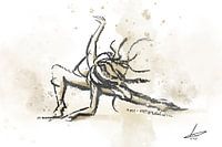 Danseres in een expressieve houding - houtskool met waterverf stijl van Emiel de Lange