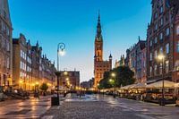 Rechtstaedtisches Rathaus bei Nacht. Der Lange Markt (Dlugi Targ) ist ein seit dem 17. Jahrhundert bestehender Platz im Stadteil Rechtsstadt, Danzig, Pomorskie, Pommern, Polen, Europa