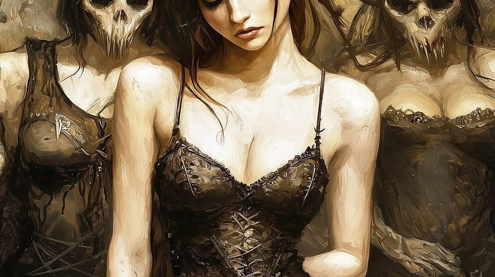 In een guur post-apocalyptisch landschap staat een dappere vrouw onverschrokken tegenover een horde zombies. De scène is gevuld met horror, angst en wanhoop terwijl de gruwelijke wezens met bloeddorstige woede op haar afkomen. Ondanks de overweldigende dreiging en de griezelige sfeer van bloed en horror straalt de vrouw hoop uit, een teken van verzet en de wil om te overleven te midden van de chaos.