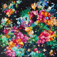 Explosief bloemrijk abstract werk tegen een mysterieuze donkere achtergrond. Als een schouwspel in de natuur dat zich in het maanlicht vertoont.