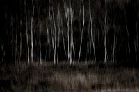 Dit berkenbosje was de aanleiding om te experimenteren met bewerkingen in photoshop. De sfeer van een donkere nacht vond ik passend bij deze voorstelling.