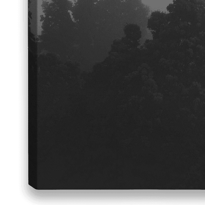 Dark woods, zwart-wit fotografie van een donker woud met nevel / mist erboven. Prachtige serene foto voor aan de muur.