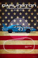 Illustratie van een serie legendarische Nascar circuits en raceauto's.