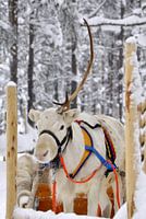 Weisses Rentier mit Schlitten - aufgenommen in Finnland