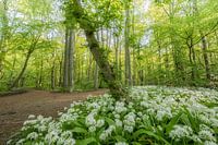 Een pad met wilde knoflook slingert door het geurige lentebos.