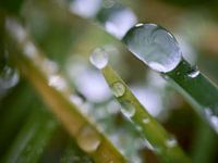 Een kraakheldere dauwdruppel op een grasspriet op een vroege ochtend in het voorjaar. Een dromerig sfeerbeeld wat goed past in een groene omgeving. Heerlijk rustgevend om naar te kijken.