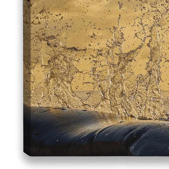 Golven raken de zandbank in het warme, zachte ochtendlicht en springen de lucht in om unieke patronen en texturen te creëren voordat ze weer terugvallen om zich bij de oceaan te voegen.