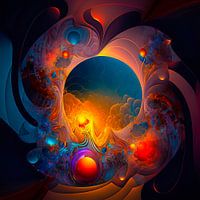 Kleurrijk abstract werk wat ontwikkeld werd met een text to image programma en tekst werd gebruikt uit de musical Hair, de eerste zin van het nummer Age of Aquarius, "this is the dawning of the age of aquarius". Naast de invoer van de tekst worden er allerlei parameters aangeboden om de ontwikkeling van de afbeelding te sturen met variaties. Deze werden door mij tot het minimum beperkt en ik kreeg 4 varianten waarvan dit werk de eerste is.