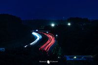 Snelweg de A35 in Hengelo met mooie lichtstrepen ook wel light trails genoemd. Het blauwe uurtje maakt het af.