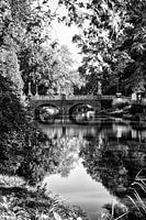 De Abstederbrug over de Singel in Utrecht in zwart-wit. De Singel of Stadsbuitengracht ligt rond de binnenstad en is sinds enkele jaren weer volledig rond te varen.
