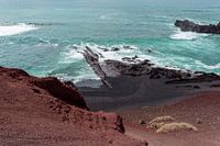 De Atlantische Oceaan en de kust van Lanzarote. Lanzarote ligt in de Atlantische Oceaan voor de kust van Marokko en maakt deel uit van de Spaanse Canarische Eilanden. De eilanden zijn vulkanisch.