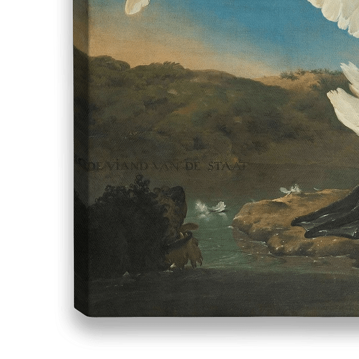 De Bedreigde Zwaan. Een van de meest iconische schilderijen uit de collectie van de grootmeesters. Geschilderd door de beroemde Jan Asselijn. Energiek verdedigt een zwaan haar nest tegen een hond. Het gevecht werd in latere eeuwen politiek geduid: de witte zwaan werd opgevat als de in 1672 vermoorde staatsman Johan de Witt, die het land…