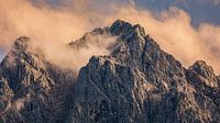 Een 16:9 foto van het laatste zonlicht van de dag op de "De Beierse Alpen", gezien vanuit Grainau, nabij Garmisch-Partenkirchen in het zuiden van Duitsland.