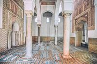 De Ben Youssef Madrasa koranschool in Marrakech, Marokko. Een prachtig voorbeeld van islamitische architectuur gebouwd rond 1570. De school ontwikkelde zich tot een van de belangrijkste Koranscholen in de islamitische wereld en met 900 studenten tot de grootste in Afrika.