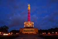 De Berlijnse Overwinningszuil in rood licht - verlicht in een speciaal licht ter gelegenheid van een evenement in de Duitse hoofdstad