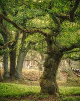 Deze kleine eik zag eruit alsof hij de andere eiken in zijn ban had. De eikenbomen in dit kleine bosgebied zijn allemaal klein en knoestig. Hun stammen zijn meestal bedekt met mos en hun takken gedraaid en grillig van vorm. Sommige lijken op kurkentrekkers, andere lijken op brede spiralen. Geen enkele boom is hetzelfde, allemaal zijn ze uniek en ik heb vele uren doorgebracht met fotograferen op de vierkante meter. Ik ben niet iemand die zich van hotspot naar hotspot haast, ik heb de neiging om veel tijd te nemen in slechts een klein gebied en om echt goed te observeren. Ik hou er niet van om me te haasten of gehaast te worden en het is dan ook niet ongewoon dat ik 4 uur op één plaats blijf. Op die manier vind ik meestal elke keer iets nieuws om te fotograferen, nieuwe relaties tussen deze bomen die ik bij vorige gelegenheden niet heb gezien en in alle seizoenen valt er wel iets nieuws te ontdekken.