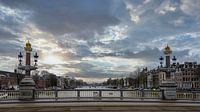De Blauwbrug in Amsterdam ontleend zijn naam aan de vorige brug met blauwe brugleuningen . De brug dateert uit 1883 en is gesierd met mooie ornamenten, inclusief lantaarns en kronen. De brug verbindt het Waterlooplein en de Stopera met de Amstelstraat. Dit werk toont van tweede fraaie ornamenten. Op de achtergrond prijkt de Magere brug.