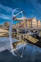 De Blokhuispoortbrug in de Friese hoofdstad, Leeuwarden, heeft een zeer herkenbare vorm en is hier gespiegeld in het stilstaande water van de gracht.