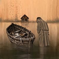 Figuratief De Boot Zonder Voetsporen Vloeibare Grond