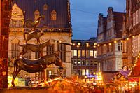 De Bremer Stadsmuzikanten en Kerstmarkt met huis Sch�tting, marktplaats westkant en Obernstra�e bij  van Torsten Krüger