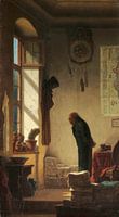 Een ambtenaar neemt laat in de ochtend een pauze van zijn kantoorwerk, en kijkt met grote genegenheid naar zijn fosterling die net een rode bloem heeft geproduceerd, bijna alsof hij er verliefd op is. De cactus geeft het aanhankelijke gevoel terug; hij groeit niet naar het licht toe maar in de richting van zijn pleegvader. De grote Biedermeierklok symboliseert het verstrijken van de tijd; de ambtenaar is nog lang niet jong, en de cactus weerspiegelt misschien wel zijn hoop dat hij nog een eind mei in zijn leven zou kunnen meemaken. De enige aanwijzing voor het soort werk dat de ambtenaar doet zijn de bundels papieren die op hoopjes op de grond liggen. Misschien staan die aan de muur klaar om naar het archief te worden gebracht, terwijl de bundels op de voorgrond nog gecontroleerd moeten worden.