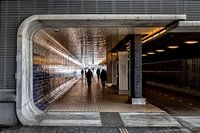 Het is een voetgangers en fietstunnel aan de Westzijde van het Centraal Station in Amsterdam.