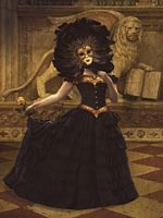 Gekostumeerde vrouw met masker dansend in de balzaal