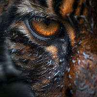 “De Diepte van de Jager”, een kunstwerk dat de ziel en het mysterie van onze gevederde vrienden vastlegt. Dit kunstwerk, biedt een zeldzame blik op het intense en doordringende oog van een majestueuze tijger, glinsterend met het vuur van het leven zelf.
