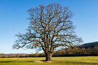 De dikke oude eik in het dal van de Werra bij Herleshausen