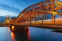 Hohenzollernbrug en Dom van Keulen bij nacht, Keulen, Rijnland, Noordrijn-Westfalen, Duitsland, Europa