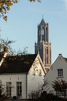 De Dom van Utrecht op 7 november 2025 (staand, kleur). Op een mooie herfstochtend maakte de Utrechtse fotograf André Blom deze foto van de Utrechtse Domtoren. Op de voorgrond gebouwen behorende bij het Duitse Huis gelegen tussen de Springweg en het Geertebolwerk.