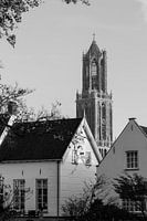 De Dom van Utrecht op 7 november 2025 (staand, zwartwit). Op een mooie herfstochtend maakte de Utrechtse fotograf André Blom deze foto van de Utrechtse Domtoren. Op de voorgrond gebouwen behorende bij het Duitse Huis gelegen tussen de Springweg en het Geertebolwerk.