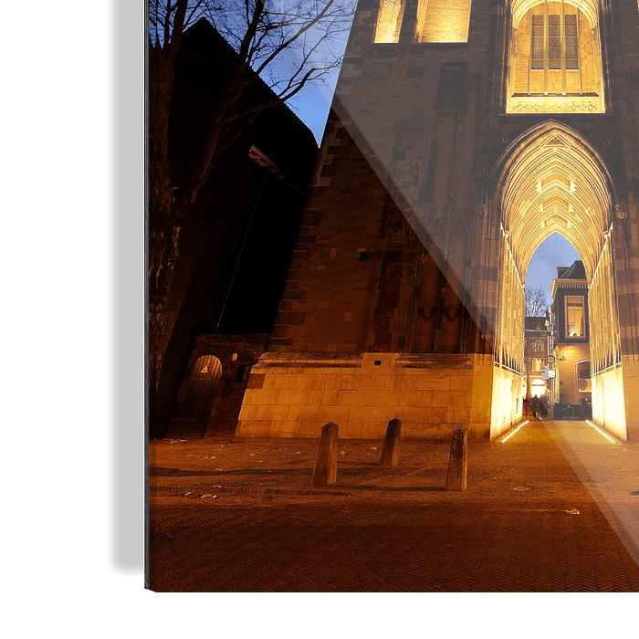 Koop de Bestseller foto De Domtoren in Utrecht gezien vanaf het Domplein van Donker Utrecht op canvas, aluminium dibond, (ingelijste) fotoprint, behang en ArtFrame, op maat geprint in Fine-Art kwaliteit.