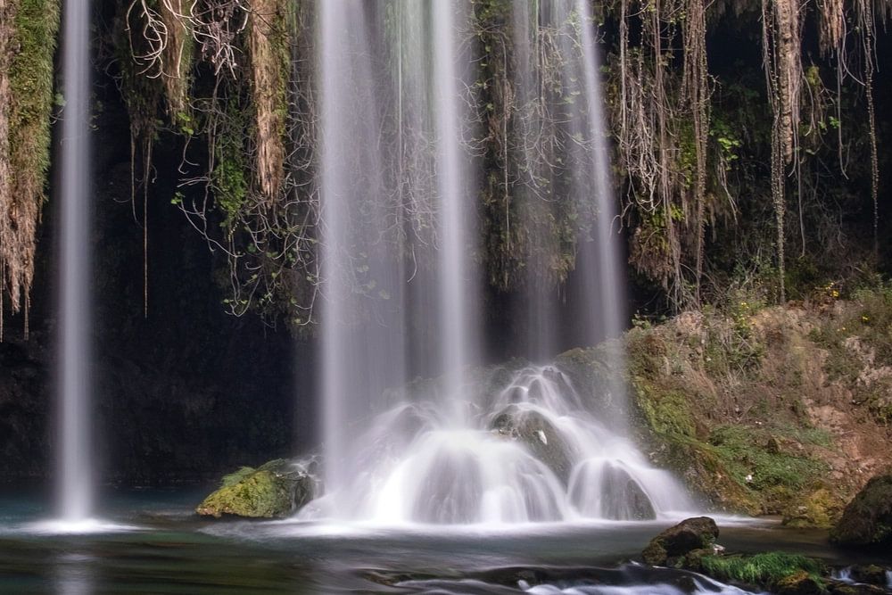 Landschapsfoto van de Düden waterval in Antalya vanaf de voorkant.