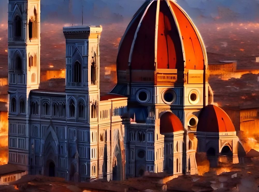 Leg de magie van Italië vast met deze prachtige afbeelding van de Duomo di Firenze badend in de warme gloed van zonsondergang. De iconische koepel en ingewikkelde gevel worden verlicht door het gouden uur en creëren een scène van ongekende schoonheid. Laat de geest van de Renaissance je meevoeren naar het hart van Florence. Dit is niet alleen kunst; het is een uitnodiging om de tijdloze charme van deze historische stad te ervaren.