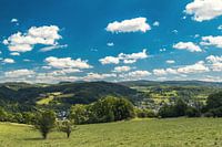 Uitzicht over de heuvels van de Eifel nabij Gerolstein en Burg Kasselburg.