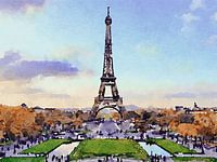 In dit werk met de iconische Eiffeltoren, zien we een dromerig stadsgezicht dat perfect de charme van Parijs vastlegt. Het olieverf geeft de scène een zachte, romantische uitstraling, waarbij de kleuren subtiel in elkaar overlopen en de stad zich als een levend doek ontvouwt. Het lichtspel vangt de essentie van de stad; elke…