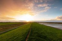 De scheiding tussen Het Wad en het vasteland. Het is de dijk boven Uithuizen. Via een lange rechte weg, de Lauwersweg, komt u uit bij een klein parkeerplaatsje, van daaruit klim je de dijk op en sta op je dit punt. Zorg ervoor dat je er met zonsondergang of zonsopkomst staat, dat is genieten!