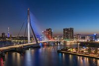 De Erasmusbrug in Rotterdam in Rood, Wit, Blauw. De tuien van de Zwaan krijgt elke jaar op Bevrijdingsdag de kleuren van de Nederlandse vlag. Op de achtergrond doet ook de Euromast mee.