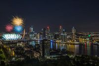 De Erasmusbrug in Rotterdam in de kleur goud met vuurwerk speciaal voor 10 jaar Werk aan de Muur. Dit werk is onderdeel van de fotocollectie van MS Fotografie. Klik rechts op "Alle werken" om meer werken uit de collectie te zien.