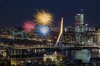 De Erasmusbrug in Rotterdam in kleur goud met vuurwerk speciaal voor Werk aan de Muur - 10 years of art. Dit werk is onderdeel van de fotocollectie van MS Fotografie. Klik rechts op "Alle werken" om meer werken uit de collectie te zien.