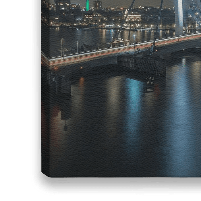 De Erasmusbrug in Rotterdam met zicht op de Euromast. Dit werk is onderdeel van de fotocollectie van MS Fotografie. Klik rechts op "Alle werken" om meer werken uit de collectie te zien.