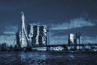 Dit uitzicht over Erasmusbrug in Rotterdam heeft de op maat gemaakte stijl “Deep Blue”. Het diepblauwe kleurenpallet geeft uw ruimte een betrouwbare zakelijke uitstraling. De afwerking geeft het werk een subtiel abstract karakter. Dit werk is zeer geschikt voor een zakelijke locatie zoals op kantoor of in een congrescentrum. Onze werken worden met een hoge resolutie geleverd aan de drukker waardoor ze uitermate geschikt zijn om zeer groot afgedrukt te worden.