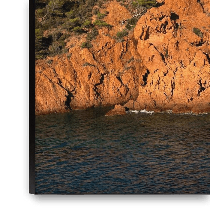Landschapspanorama van de Esterel-kust aan de Côte d Azur in Zuid-Frankrijk met zijn bijzondere oranjerode rotsen.