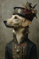 Koop dit portret De Excentrieke Modeontwerpster - Vintage Hondenportret van Joriali Fine Art als print op canvas, aluminium dibond, (ingelijste) fotoprint, behang en ArtFrame. Voor jou op maat geprint in Fine-Art kwaliteit.