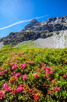 Alpenroosbloesem tegen de achtergrond van de Faulkogel