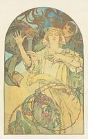 Alfons Maria Mucha, internationaal bekend als Alphonse Mucha, was een Tsjechische schilder, illustrator en graficus die tijdens de Art Nouveau periode in Parijs woonde en vooral bekend is om zijn uitgesproken gestileerde en decoratieve theateraffiches, met name die van Sarah Bernhardt. Hij maakte illustraties, advertenties, decoratieve panelen en ontwerpen die de beroemdste afbeeldingen van die periode werden.