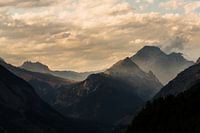 De Franse Alpen bij zonsondergang. Foto is genomen bij de Franse vestingstad Briancon (Briançon) dat op de grens van Italië en Frankrijk ligt en uitkijkt op deze bergen.