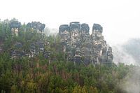 De Gansfelsen in Saksisch Zwitserland in de mist van Holger W. Spieker