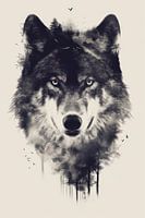"De Geest van de Wolf" is een indrukwekkend kunstwerk dat de wilde essentie van een wolf vastlegt in een monochrome compositie. Het gedetailleerde portret van de wolf, met zijn intense blik en krachtige aanwezigheid, vloeit samen met subtiele silhouetten van bomen en vogels, wat een gevoel van verbondenheid met de natuur creëert. De zwarte en grijze tinten versterken de mystieke en tijdloze sfeer van het kunstwerk. Dit stuk is perfect voor liefhebbers van wilde dieren en natuurlijke schoonheid en voegt een element van rust en mystiek toe aan elk interieur.